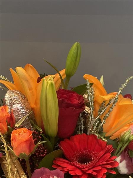 Please note that due to the seasonal availability of flowers it may be necessary to vary individual stems from those shown. Our skilled florists may substitute flowers for one similar in style, quality and value. Where our designs include a sundry item like a vase or basket it may not always be possible to include the exact item as displayed. If such an occasion arises we will make every effort to replace the item with a suitable alternative.