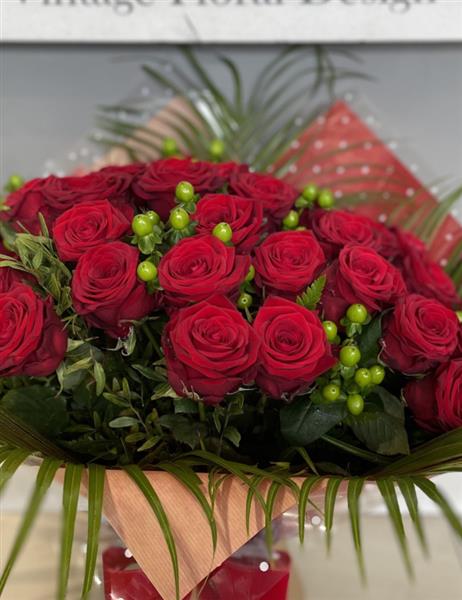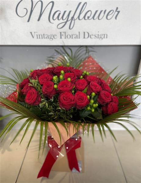 24 long stem beautiful red roses presented to the highest standard